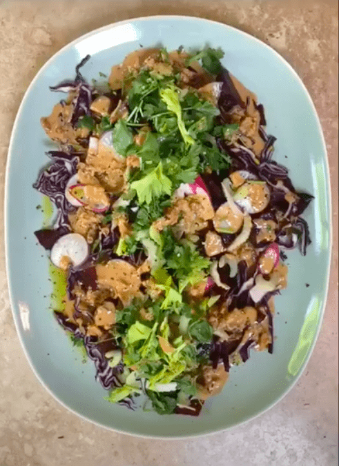 I learnt an important lesson from Cambodian chef Susie Jones about adapting recipes according to what you have in your fridge. Susie taught me how to make Vietnamese and Thai salads when I was writing our book on Salads From Around the World link to book. She explained rather than hunt down a rare Thai fruit or vegetable she would think what it brought to the dish. She used shavings of raw swede for crunch, cherries for sweetness and a lime for sourness. None of them were in the original recipe but they did the same job.