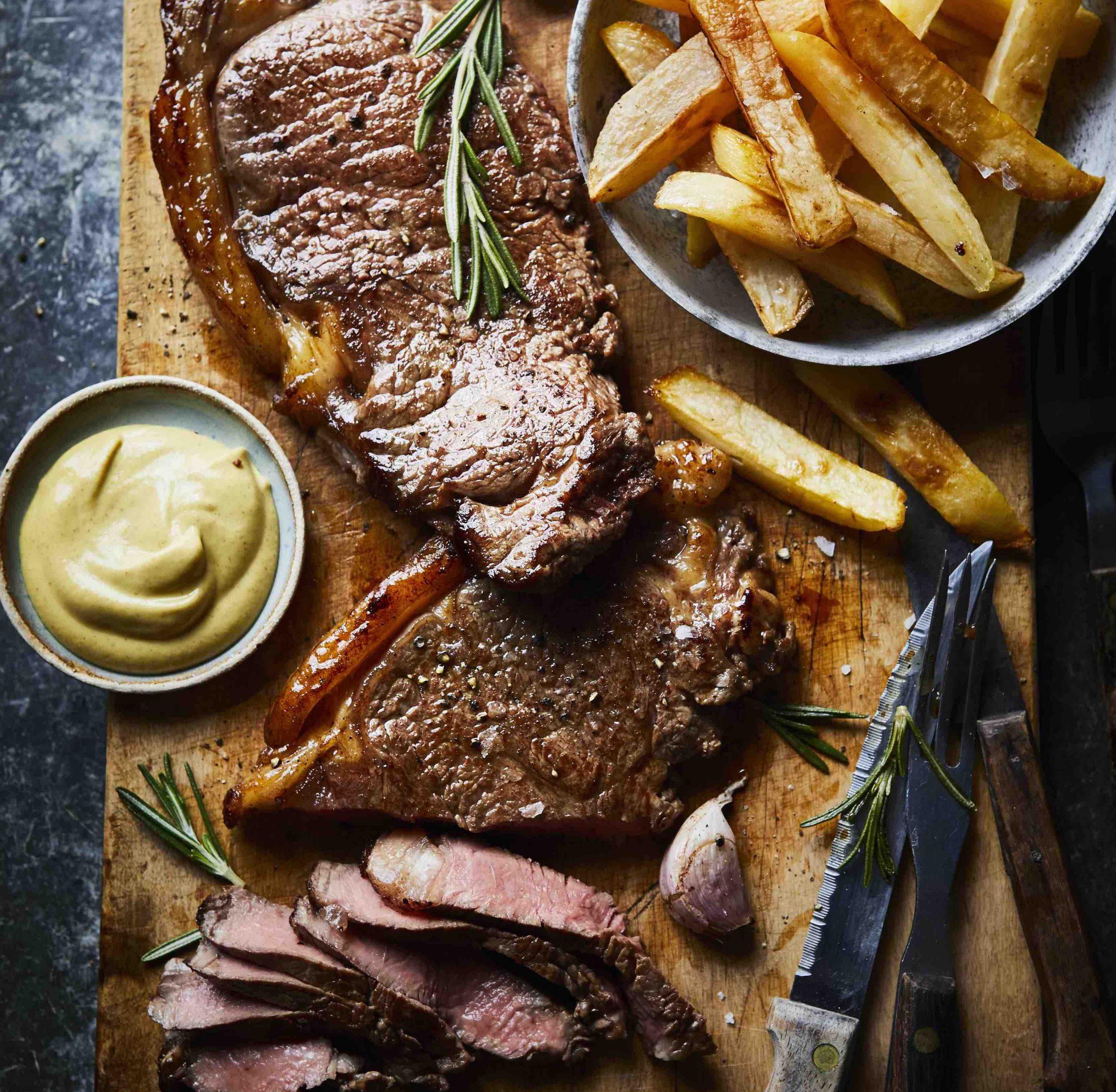 2 ribeye or sirloin steaks, weighing about 230g (8oz) each and 1.5cm (5⁄8in) thick