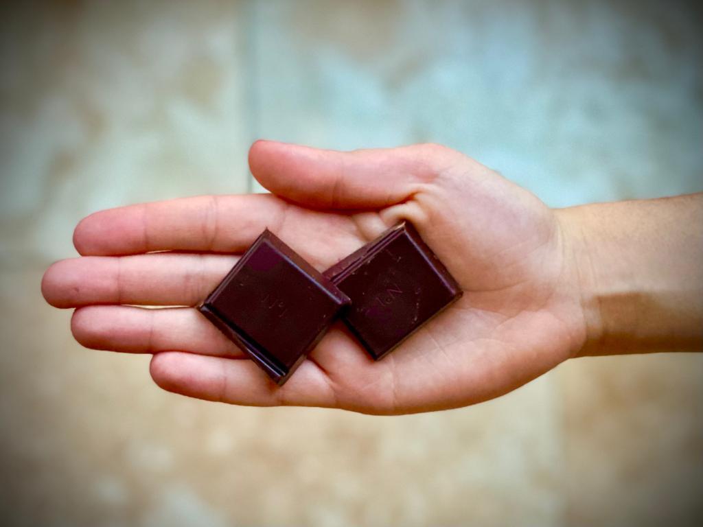 However if you do eat a couple of squares do this mindfully ie. know what you are eating and how many carbs and calories this little snack contains. Never mindlessly snack, always drink a glass of water first as it may be that you are thirsty rather than hungry.
