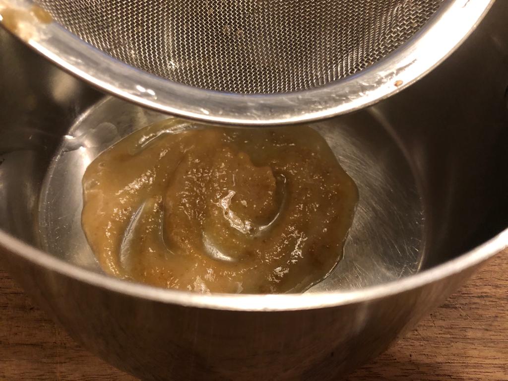 Put this mixture into a sieve and push it through with a spoon into a medium saucepan. Discard the skin of the date. If you don’t want to use the date add a teaspoon or two of honey, to taste, to the custard at the end.